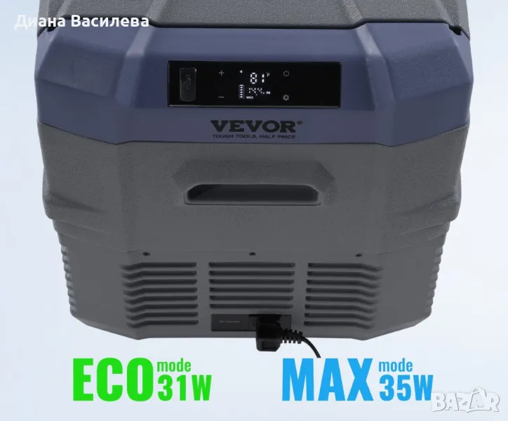 Продавам нов преносим хладилник с компресор VEVOR. Model. NL40 който ще ви позволи да запазите храната и напитките си както охладени, така и замразени докато пътувате на по-дълги маршрути. Този многофункционален хладилник се предлага в обем от 39 литра,