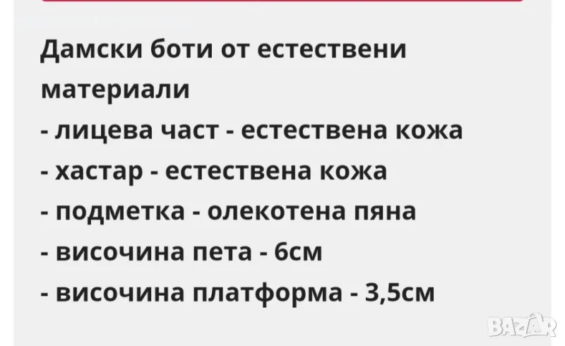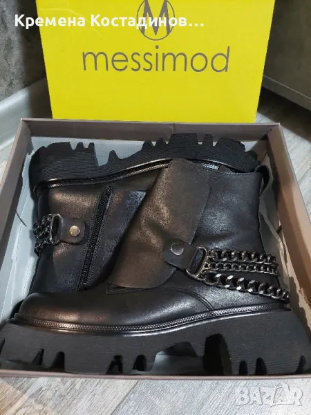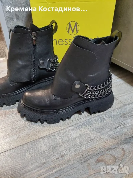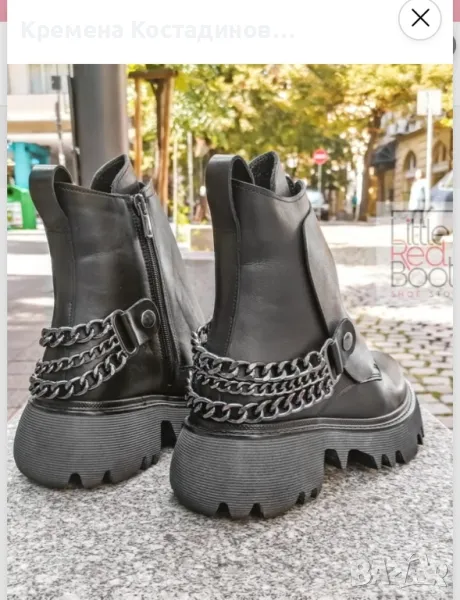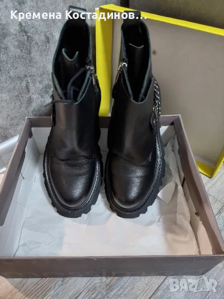 Дамски боти 37н.- отговарят. Обути един път, но за жалост леко са ми тесни и така си стоят. Много красив и различен модел - с вериги, но не прекалено груб. Ходилото е олекотено.. Редовна цена 209лв