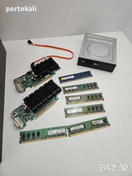 Някои неща са чисто нови. Компютър, кутия Dell + захранване, записвачка, кабели. Захранването е тествано и работещо. Има и разни кабели, както и други части - видеокарти (една 512MB и една 1GB), RAM памети няколко плочки по 2GB и 4GB, записвачка и други неща. Разгледайте снимките, цената е обща за всичко!