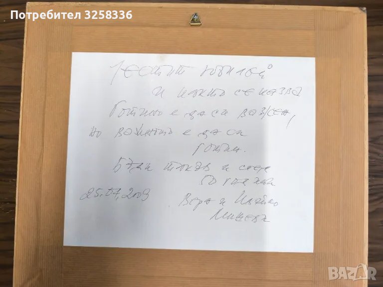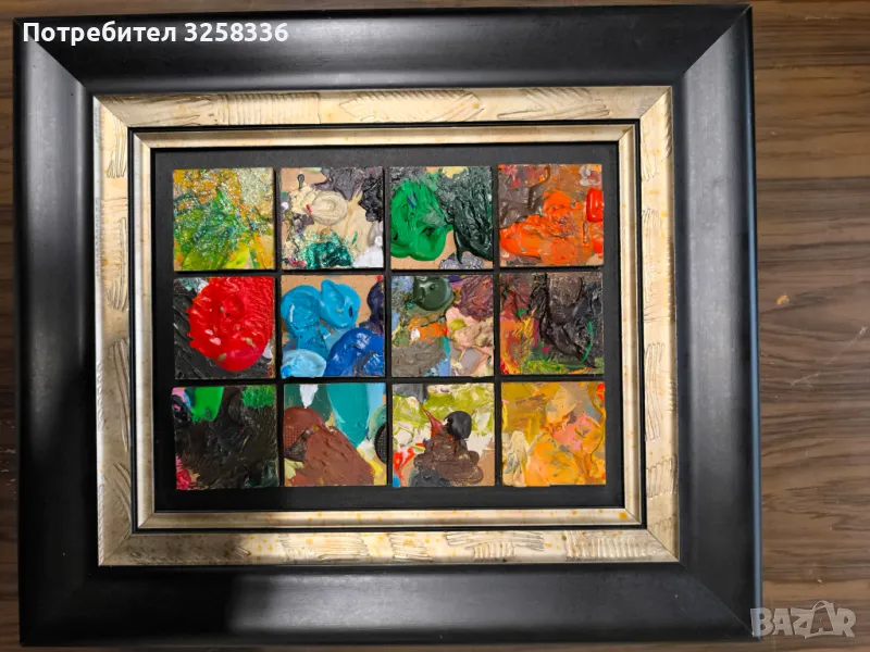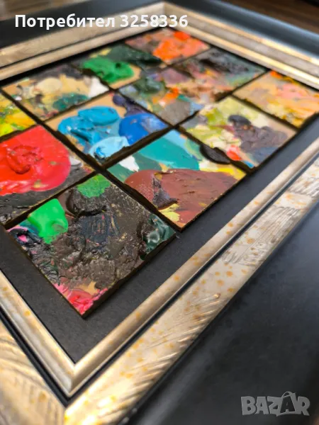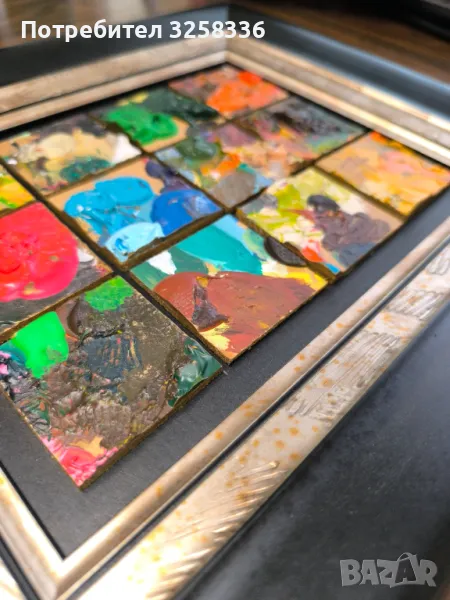 Интересна малка картина, съставена от различни налепени рисувани квадратчета. Размер 35/30