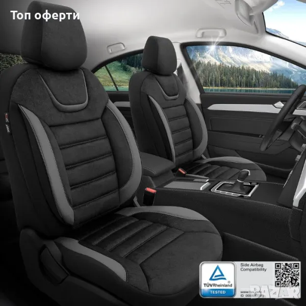 Съвместими с повечето модели автомобили: Благодарение на технология на формоване AEROFIT и технологии застегивания на ципа, напълно съвместима с всички леки и офроуд автомобили, напълно адаптирани към предпазните колани, подлакътниците и функцията за сгъване на задната седалка.