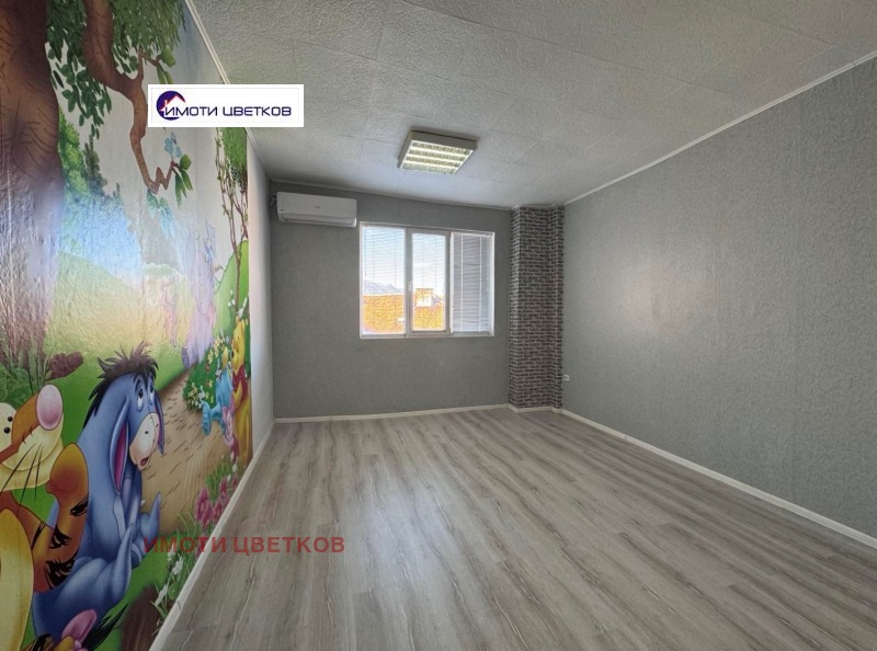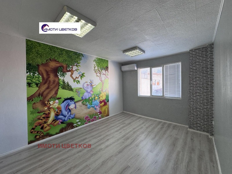 Самостоятелен етаж в административна сграда, в идеалния център на града, на пешеходната зона, състоящ се от четири отделни помещения и санитарен възел. Предназначение: за делова и административна дейност. Подходящ за счетоводна, художествено-творческа и образователна дейност, застрахователен/кредитен офис.