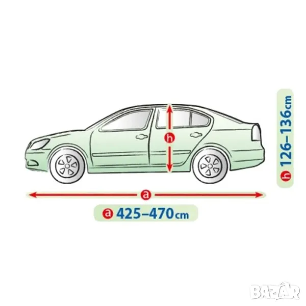 Покривалото е изработено от 4-слоен материал. Предпазва автомобилa от вредните влияния на околната среда през цялата година. През зимния сезон предотвратява отлагането