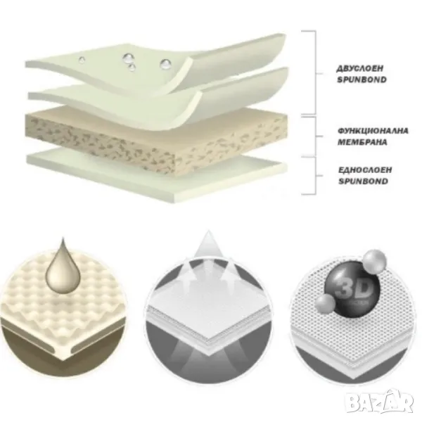 Покритието не се намокря, като в същото време отвежда водните пари навън, предпазвайки колата от ръжда и плесен. Подходящо както за краткотрайна, така и за продължителна употреба. Покривалото може да се пере на ръка на 40 градуса.