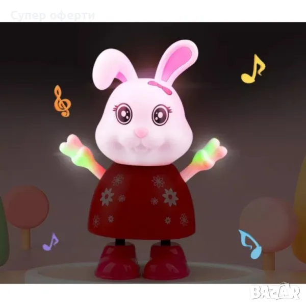 Забавната и атрактивна интерактивна играчка Танцуващото зайче ще зарадва всяко дете с ярките си светлини, приятни звуци и весели танцови движения.