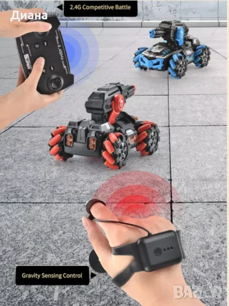 Танк с дистанционно управление и управление с ръка, изстрелва водни бомби → Обява 48688603