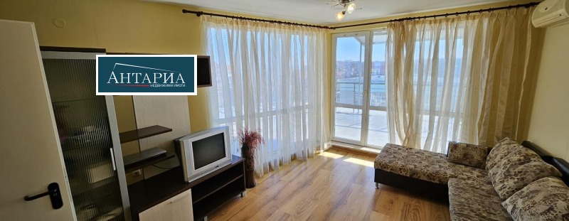 Обзаведен тристаен апартамент с изглед към морето, близо до централния плаж. Апартаментът е в сграда с асансьор и без такса поддръжка. Разпределението включва коридор, дневна с трапезария и кухненски бокс, две просторни спални, баня с тоалетна и просторна панорамна тераса с морски изглед.
