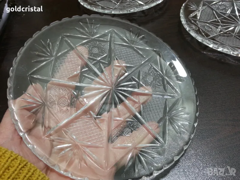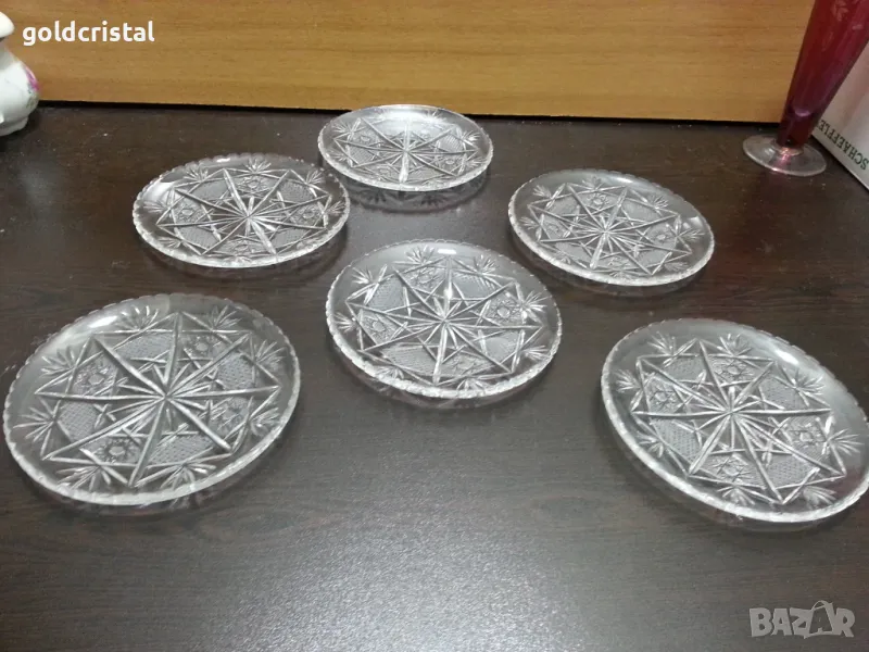 Стар български кристал кристални чинии употребявани но без чукнато и пукнато 6 бр -180лв или нови в кутия неупотребявани 6 бр-299лв сервиз комплект сет лот ретро арт декор винтидж колекция стари старинни антикварни предмети обзавеждане за дома и семейството