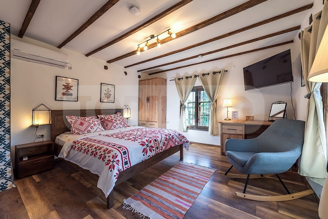 Втора къща (75 кв.м.) разполага с кухня, два къта за сядане, две просторни спални, баня с тоалетна, килер.