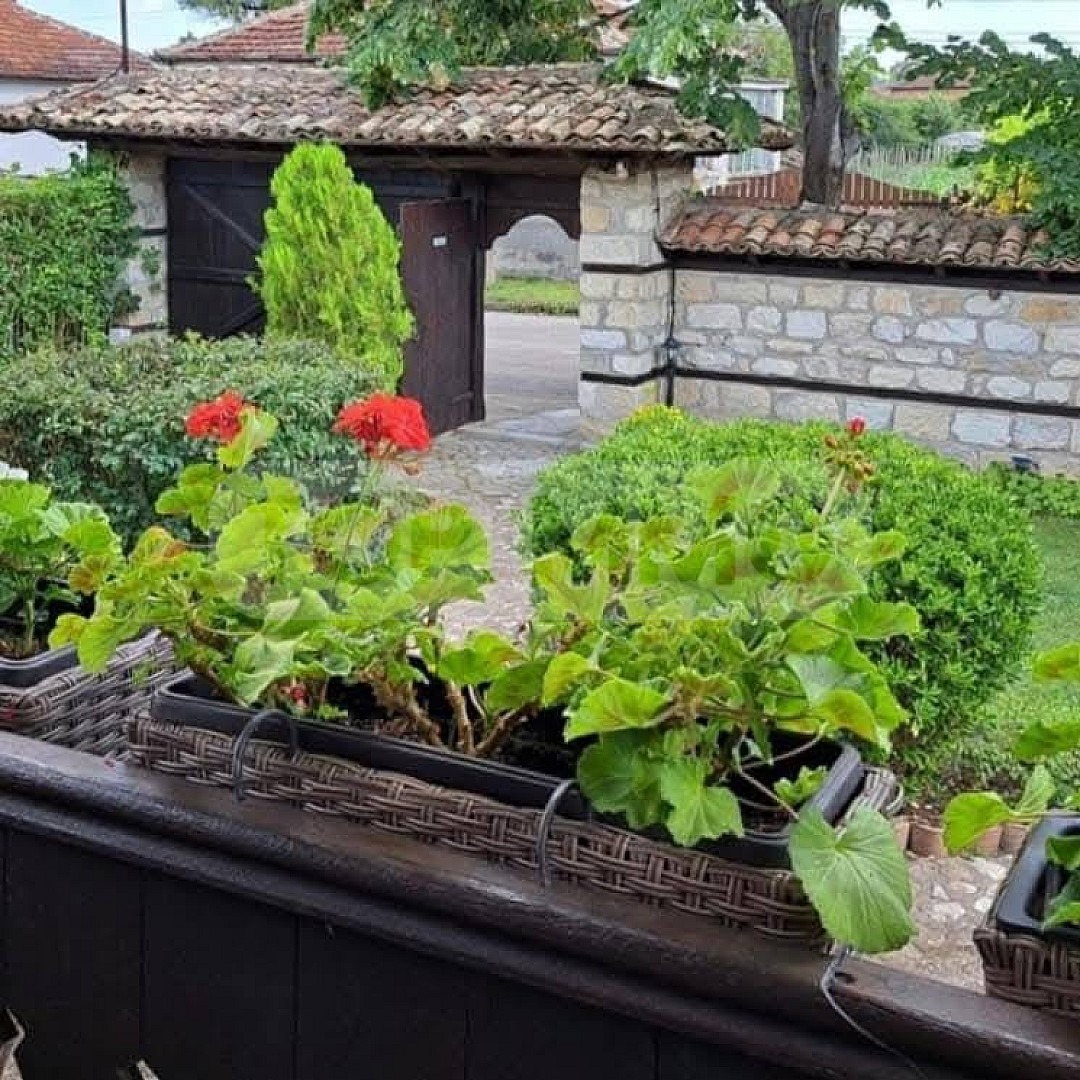 Дворът е отлично озеленен и аранжиран с цветна градина, с декоративни пътеки, градинско осветление, кладенец, пещ за печене на хляб, допълнителна традиционна камина с чеверме, градински басейн през летния сезон.