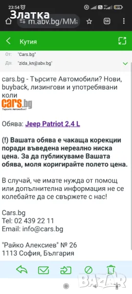 Джипа е в перфектно състояние! Не чакайте намаление на цената! На последната снимка може да видите, че от сайта cars.bg ми спряха обявата "поради въведена нереално ниска цена"! При разговор с вас, ще обясня защо цената е толкова ниска! Може бартер САМО за 40 грама злато!!!