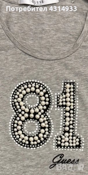 Светлосива тениска на Guess в размер XS. Моделът е с перли и камъчета. Без забележки!