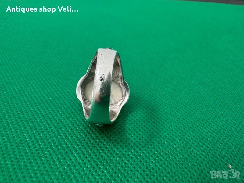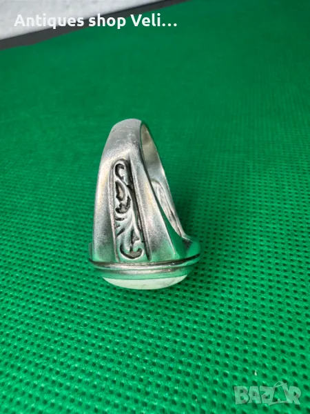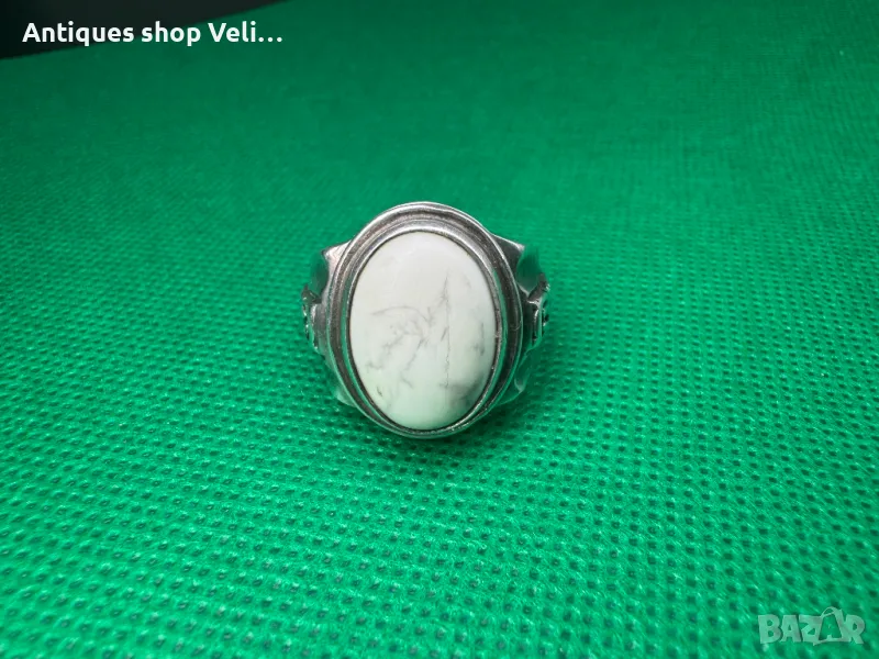 Масивен мъжки сребърен пръстен с бял хаулит. Внушително и стилно бижу, което ще добави стил и класа към вашата визия. Добро състояние. Предлагаме доставка с Еконт и лично предаване за градовете Велико Търново, Русе и Сливен.