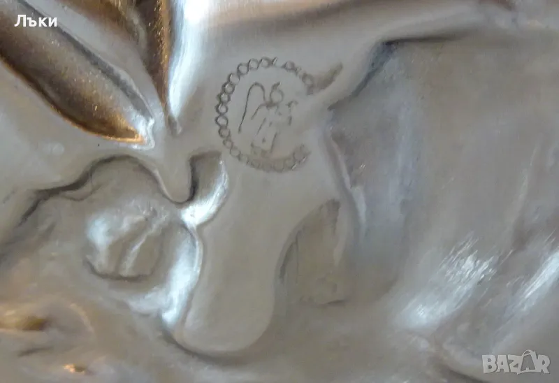 изработка от 95% калай и 5% сребро,маркирано от производителя.В центъра има