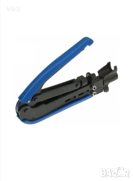 Основни характеристики : Дълготраен инструмент, изработен от най-висококачествени материали. Кримпва конекторите в различни дължини - възможни са две позиции на спиране. Поради компактните си размери заема много малко място. Заключване с лост за съхранение.