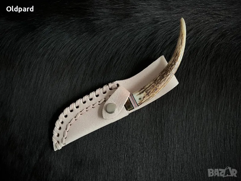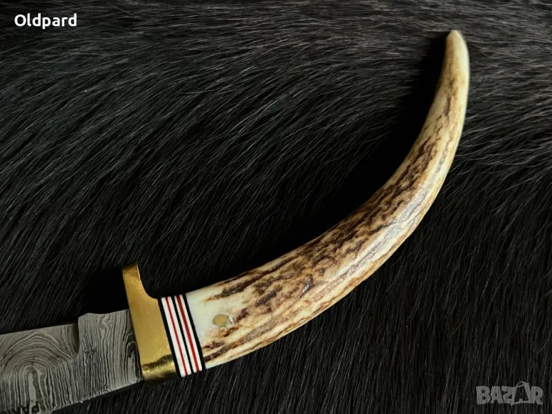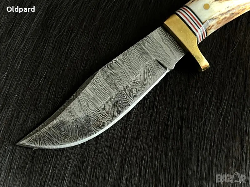 Компактен ловен нож Rite Edge. Damascus DM1027. Обща дължина 20 см. Острие 8.0 см от истинска дамаска стомана (красива шарка). Дръжка от еленов рог. Прекрасен подарък за колекция, за ползване на лов или у дома.