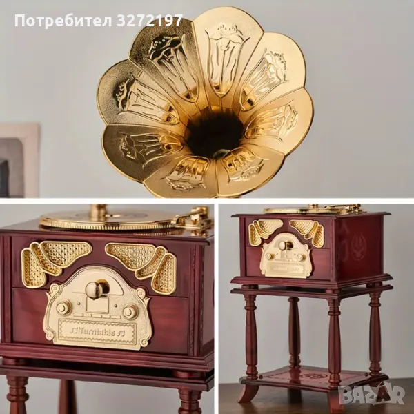 Винтидж Европейски Стил Грамофонна Музикална Кутия с кутия за бижута