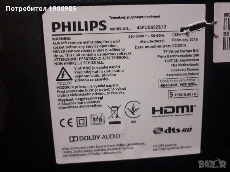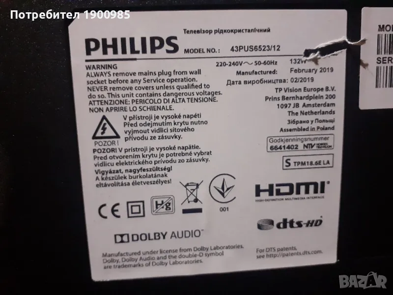 Телевизор 43" Philips 4K със счупен дисплей 43PUS6523/12