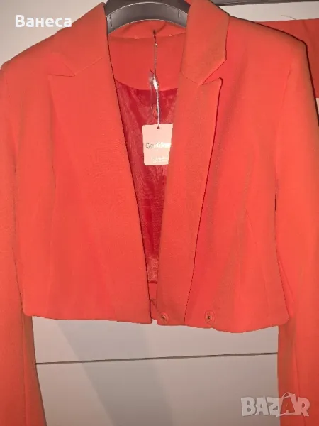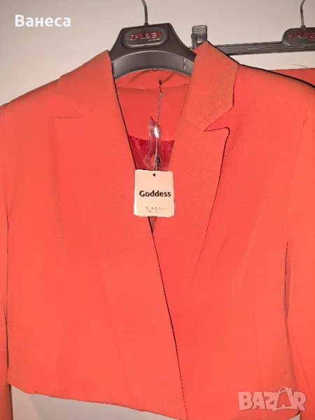 Чисто нов комплект на българският бранд " Goddess by Andjleina". В кутия,плик,с етикети и резервно копче за сакото. Много лека и приятна материя. Сакото има подплънки в раменете.