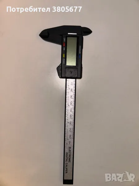 Дигитален шублер, изработен от издръжлив пластмасов материал.