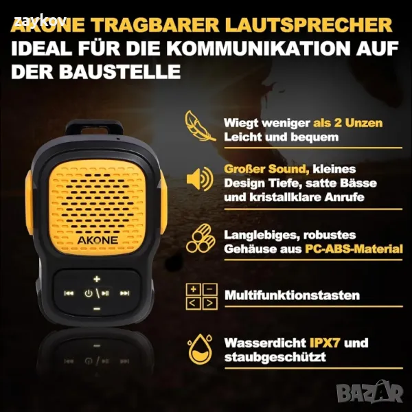Подходящ за ежедневна употреба: Музикална кутия безжичен високоговорител AKONE за туризъм, бягане, ежедневна работа или тренировки/упражнения. Можете да слушате музика, докато възприемате заобикалящата ви среда. Лесен за използване дори с ръкавици.