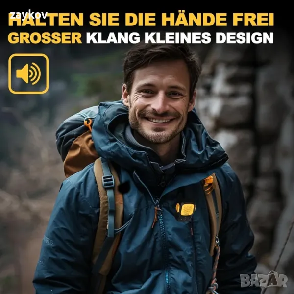 Дръжте ръцете си свободни: Този преносим високоговорител с щипка се предлага като лесна за отваряне щипка за работа с една ръка или с приставка за магнитна щипка, която се прикрепя към вашата риза, раница или яке с подвижни монтажни магнити. Включва и каишка, която може да се носи като часовник. Има три опции за носене, от които да избирате.