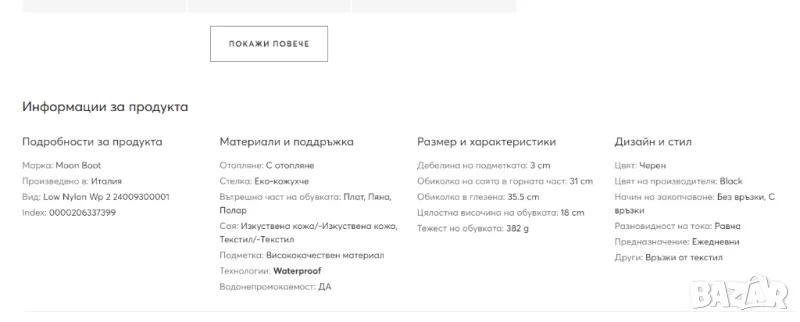Така, благодарение на синтетичната изолация, вие сте ефективно защитени от студа, докато водоустойчивата мембрана ще запази краката ви сухи. И накрая, подметката от термопластичен каучук осигурява добро сцепление върху сняг и други хлъзгави повърхности, така че можете да сте сигурни, че стъпвате дори когато се разхождате из курорта по здрач.