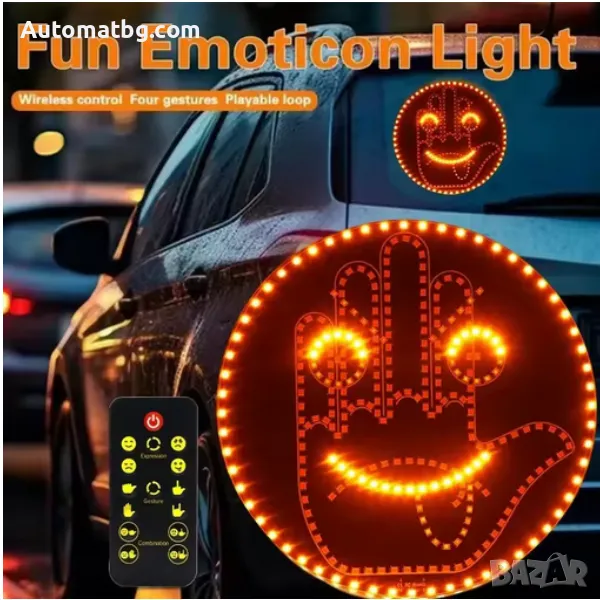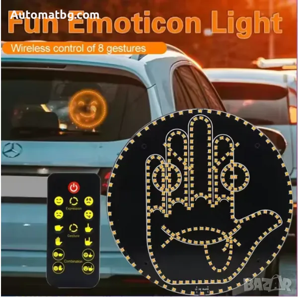 LED табела за автомобил Automat, Светеща ръка, Емоджи.