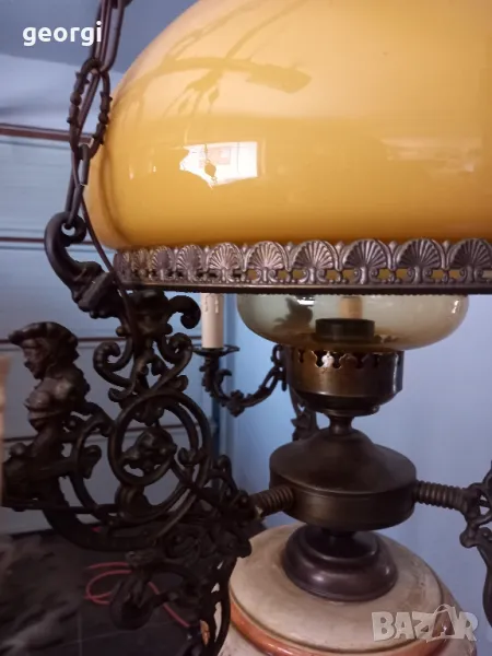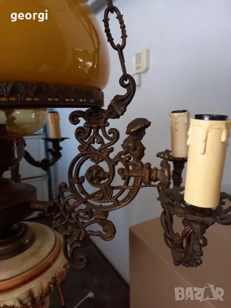 ретро полилей от месинг, порцелан и стъкло → Обява 48695606