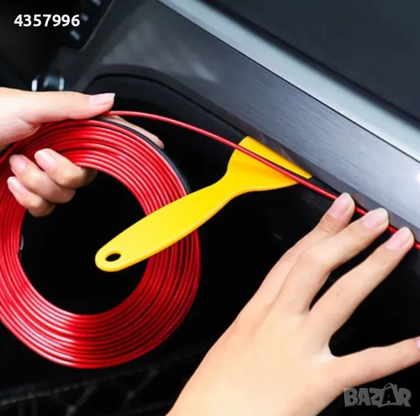 Интериорна лента за автомобил Червена 5М + инструмент за инсталация → Обява 48695647