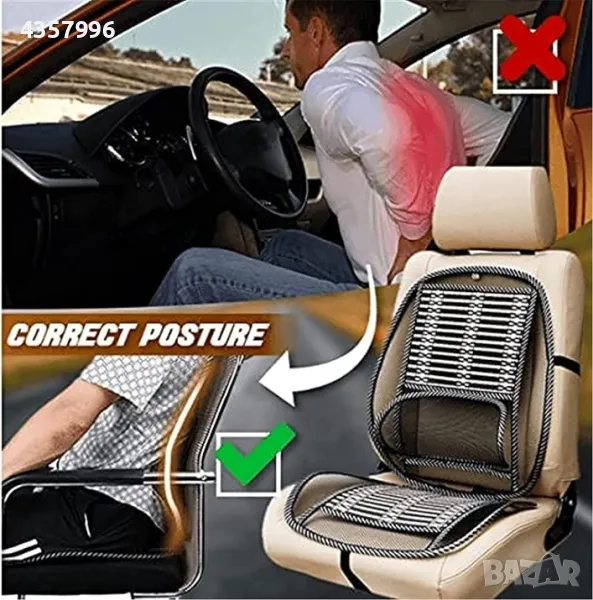 Анатомична мрежеста седалка масажор с ортопедична извивка за кръста за атомобил бус или за офиса → Обява 48696059