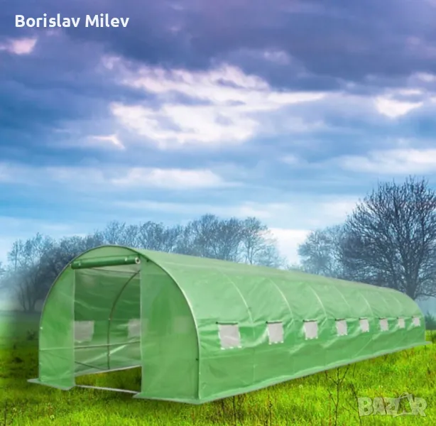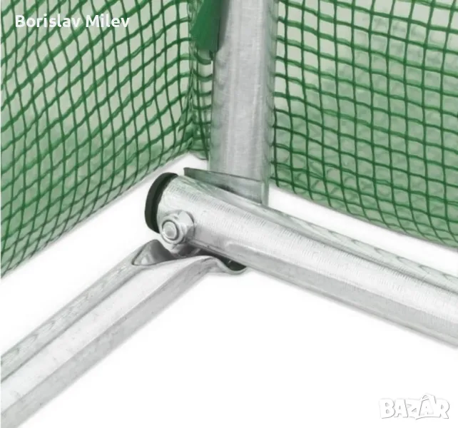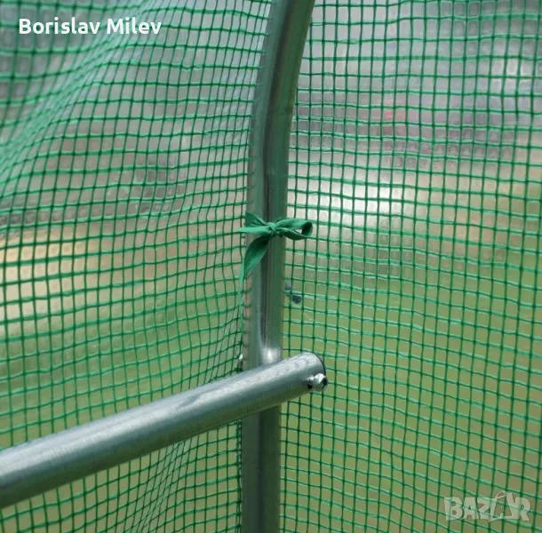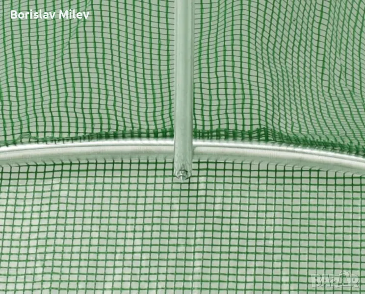 • Найлонов материал: Покритието на оранжерията е направено от армиран найлон. Този материал е устойчив на разриване и е усилен със специални влакна или мрежа за повишена здравина.
