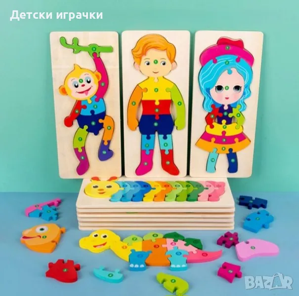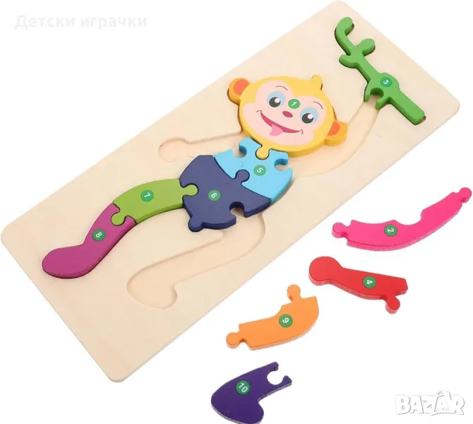Дървен пъзел Заек, Момче, Маймуна 10ч → Обява 48697431