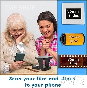 Съхранявайте цифрово ценните си спомени. Увековечете своя аналогов филм и диапозитиви, преди да се превърнат в прах на тавана ви! Този лесен за използване скенер за сгъваеми филми ви позволява да преглеждате, сканирате, конвертирате и дигитализирате стари филми и слайдове на вашия смартфон само за няколко минути.