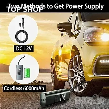 Предимство 2: 2 начина на захранване, 12V DC въздушен компресор или вградено 6000mAh безжично захранване на батерията. В сравнение с други, които поддържат само захранване от батерията, това означава, че можете да използвате тази въздушна помпа само когато е пълна. Но ние разрешихме тези дефекти в дизайна, когато безжичният въздушен компресор е изключен, можете да го включите в гнездото на запалката на автомобила, за да получите захранване и да напомпате гумите на автомобила си директно (моля, дръжте двигателя на колата си включен), това е наистина аварийна гума помпа.