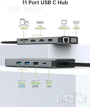 Omars USB C докинг станция с троен дисплей, 11 в 1