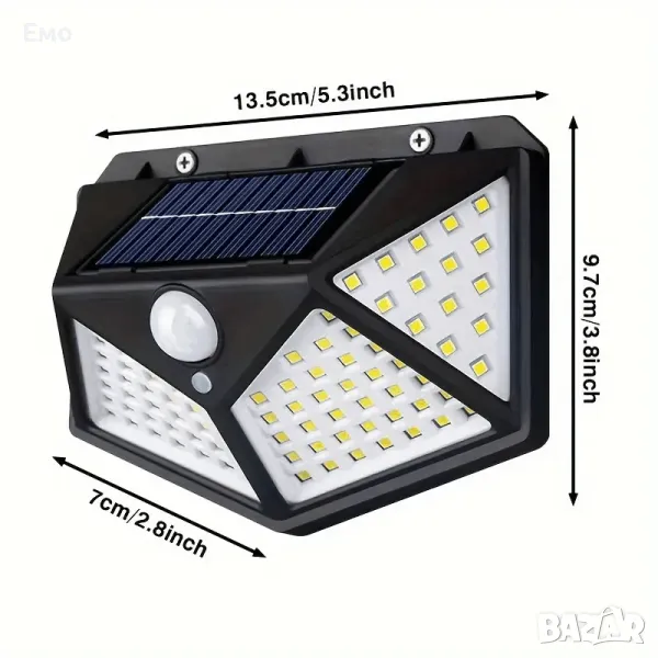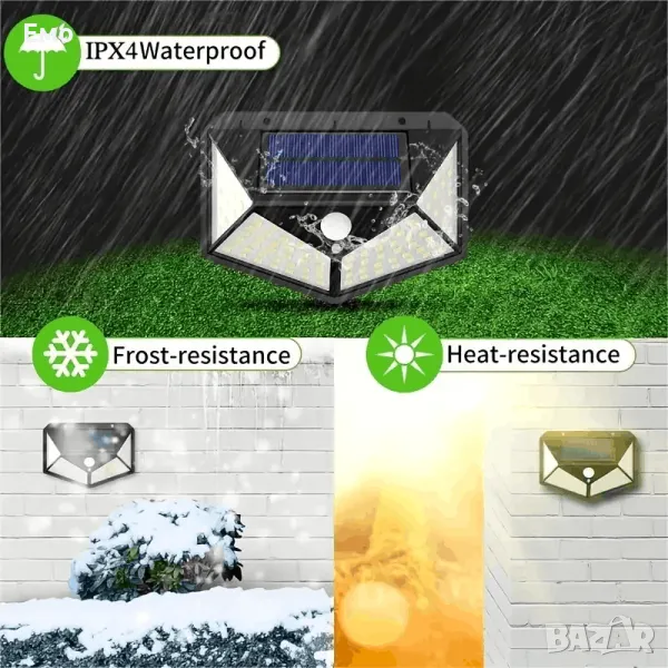 Соларни лампи комплект 4 броя - 100 Светодии с Детектор за движение