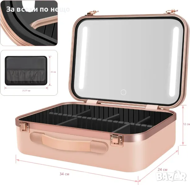 С елегантен и модерен дизайн, нашият несесер за гримове е не само практичен, но и изключително стилен. Изработен от висококачествени материали, той е устойчив на износване и лесен за почистване, което го прави идеален за ежедневна употреба или за пътувания. С LED огледалото, вградено в капака, вие ще имате перфектна видимост, за да постигнете желаната визия.