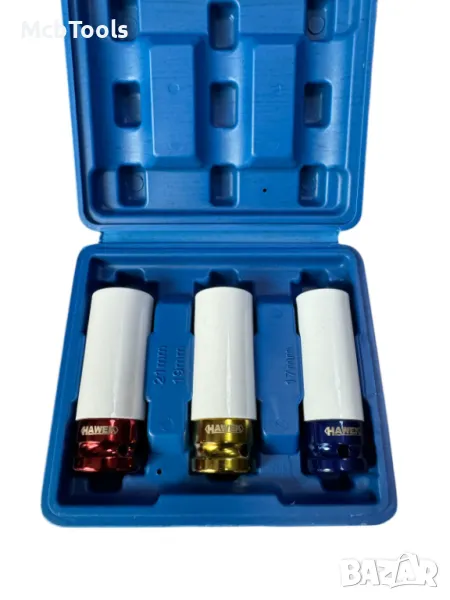 • Размери 17, 19 и 21 mm, подходящи за развиване на джантови болтове