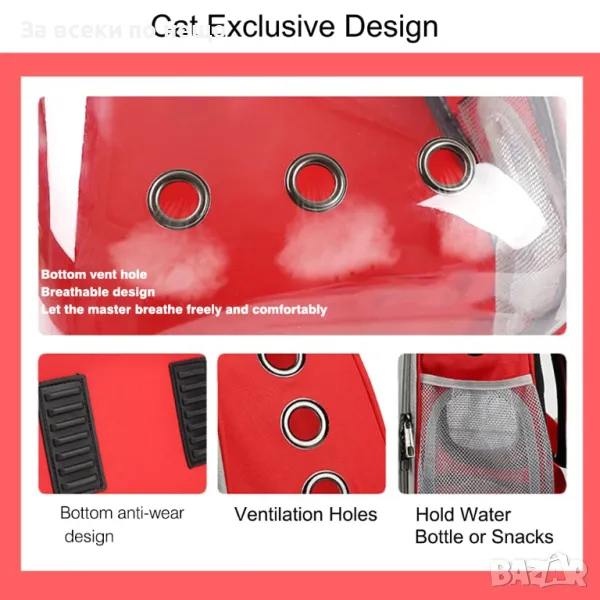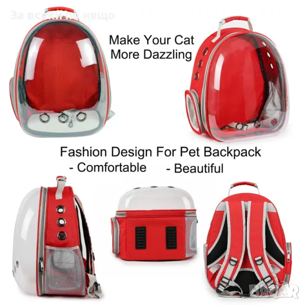 Прозрачна визия – уникалният прозрачен дизайн на раницата позволява на вашия домашен любимец да вижда околната среда по всяко време, като това намалява стреса и го прави по-спокоен по време на пътуване.