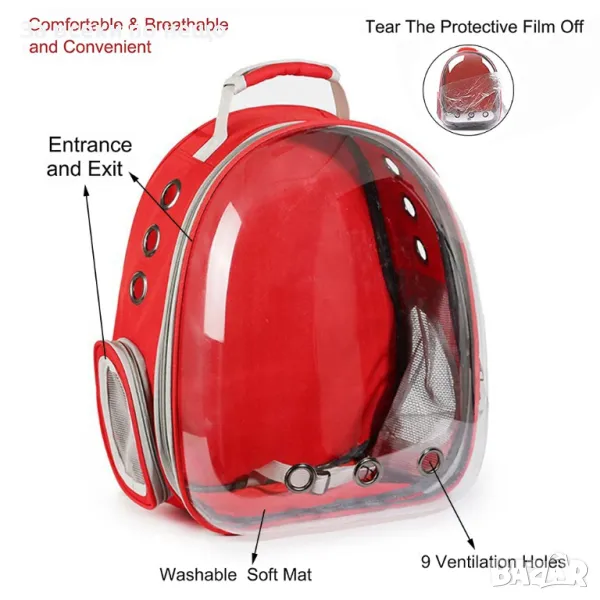 С тази прозрачна раница за домашни любимци, вие осигурявате на своя любимец комфортно и сигурно място за пътуване, като същевременно имате стилен и модерен аксесоар.
