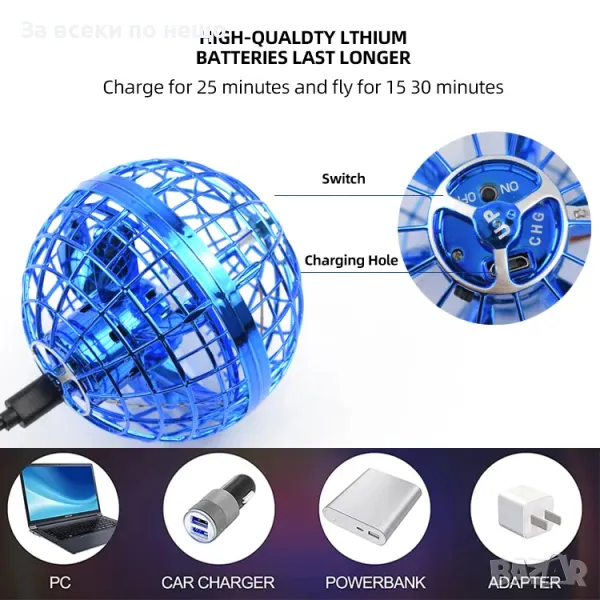летяща топка Nova 360 Hover Orb! Тази уникална и иновативна играчка ще предостави часове забавление на вашето дете, като съчетава летене, светлинни ефекти и интерактивност. Със своите цветни LED светлини и 360-градусова ротация, летящата топка създава магически визуални ефекти, които ще впечатлят всички. Леката и безопасна конструкция гарантира, че играчката е лесна за използване както на закрито, така и на открито, като е подходяща както за деца, така и за възрастни, които търсят забавление.