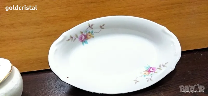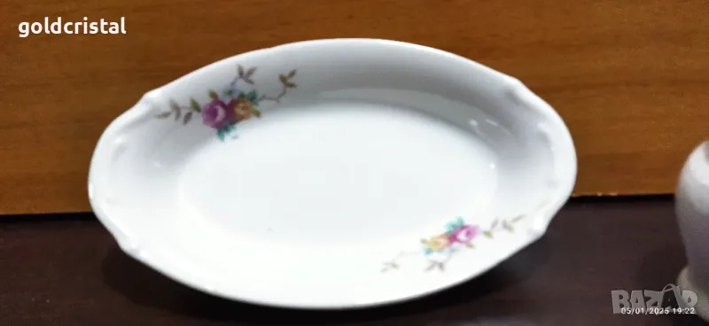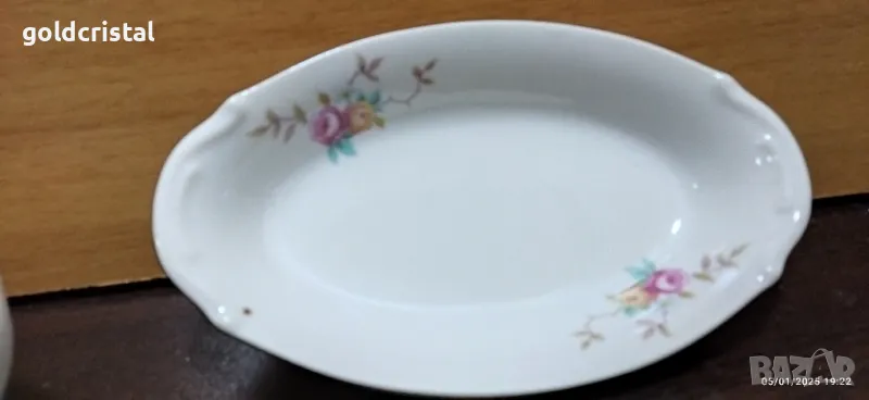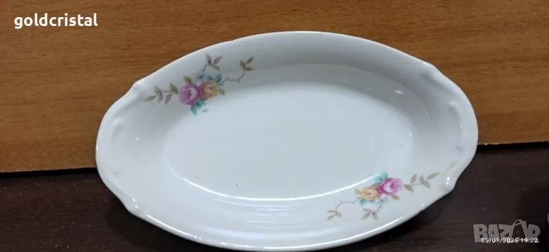 Стар български порцелан Изида солничка 20лв чинии елипси 2 бр -30лв сервиз комплект сет лот ретро арт декор винтидж колекция стари старинни антикварни предмет и обзавеждане за дома и семейството подходящи за подарък за ценители и колекционери