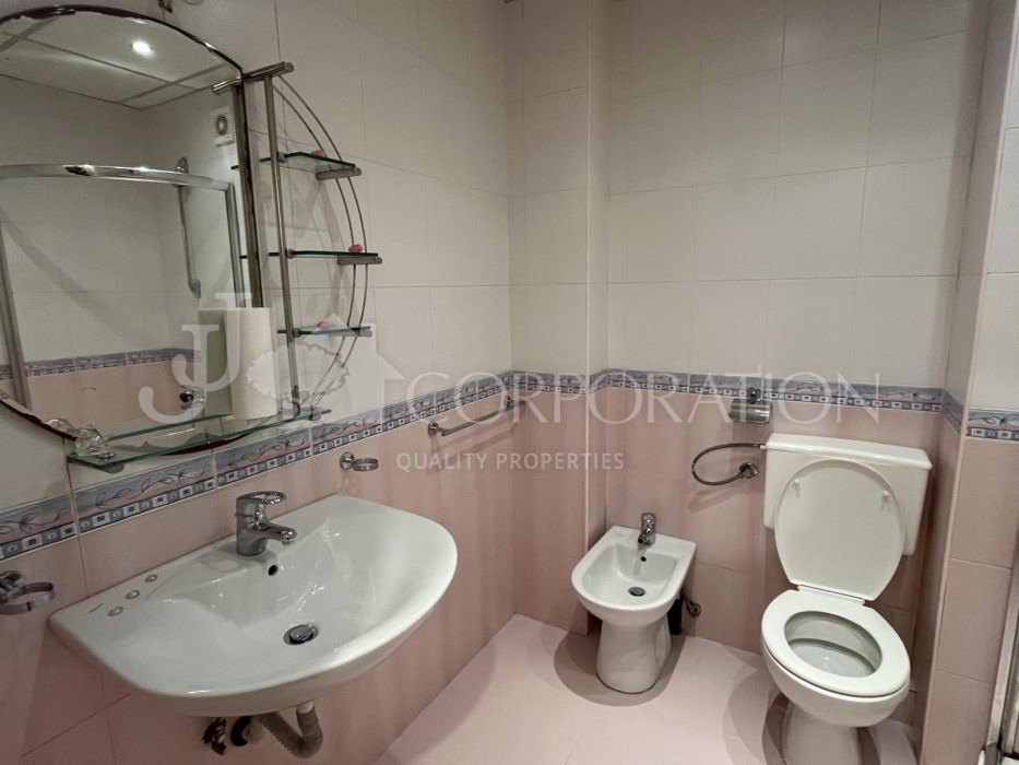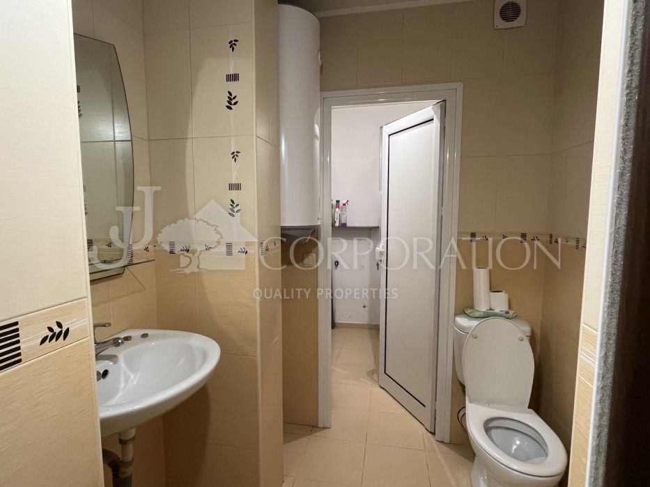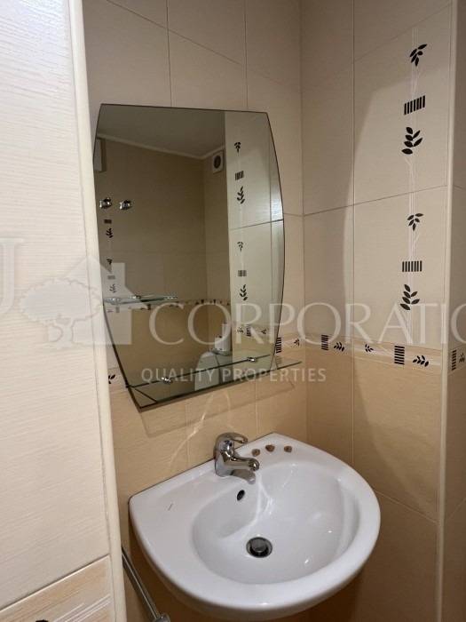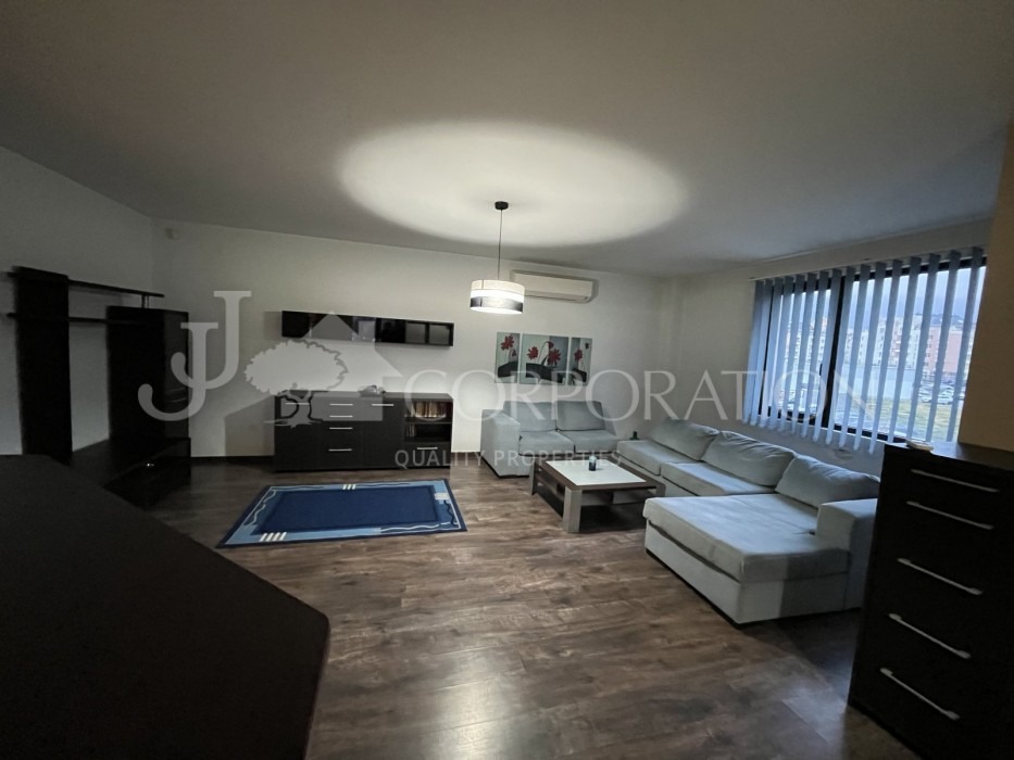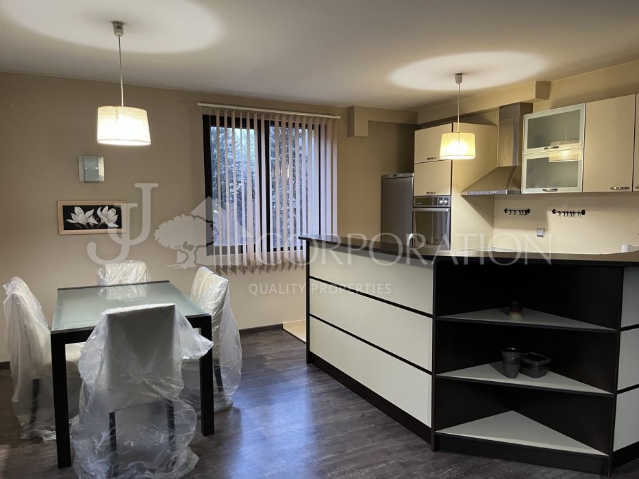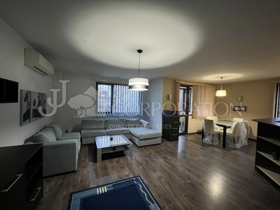 Джей Джей корпорейшън предлага на Вашето внимание просторен, непреходен, двустаен апартамент под наем, находящ се в кв. Гоце Делчев , в близост до Южен парк, Лидл, МОЛ България и МОЛ Парадайс. Сградата е с бърз и лесен достъп до главна пътна артерия и разполага с контрол на достъпа, в близост до супермаркет, магазини, аптеки, заведения, спирки на градския транспорт и т.н. Разпределение: голямо входно антре, просторна дневна с трапезария, кухненска част (с всички необходими ел. уреди) и голяма тераса пред тях, спалня, две мокри помещения включващи и тоалетна и отделно перално помещение. Отоплението на жилището е на ТЕЦ, а за допълнителен комфорт има климатици. В имота не се допускат домашни любимци!