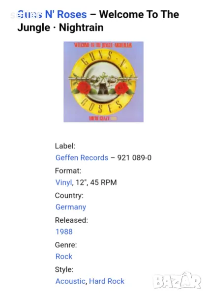 Guns N' Roses ‎– Welcome To The Jungle · Nightrain Maxi Single 12 Немско издание 1987г Състояние на , снимка 1 - Грамофонни плочи - 48700349 Guns N' Roses ‎– Welcome To The Jungle · Nightrain Maxi Single 12 Немско издание 1987г Състояние на , снимка 2 - Грамофонни плочи - 48700349 Guns N' Roses ‎– Welcome To The Jungle · Nightrain Maxi Single 12 Немско издание 1987г Състояние на , снимка 3 - Грамофонни плочи - 48700349 1/3
