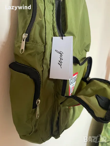 Оригинална спортна раница GUESS, нова, с етикети, унисекс модел, текстилна, с 6 джоба, регулиращи презрамки, много лека и удобна, компактна, може да се сгъне, заемайки много малко пространство, дори и в дамска чанта. Размерите са приблизително 33см. /48 см.