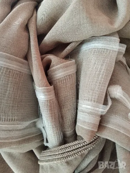 От този материал е налично още едно перде, късо и много широко, подходящо за хол. Може да бъде разделено на 2 или 3 пердета при желание. Размер: ширина 520 см, височина 180 см. - цена 65 лв.