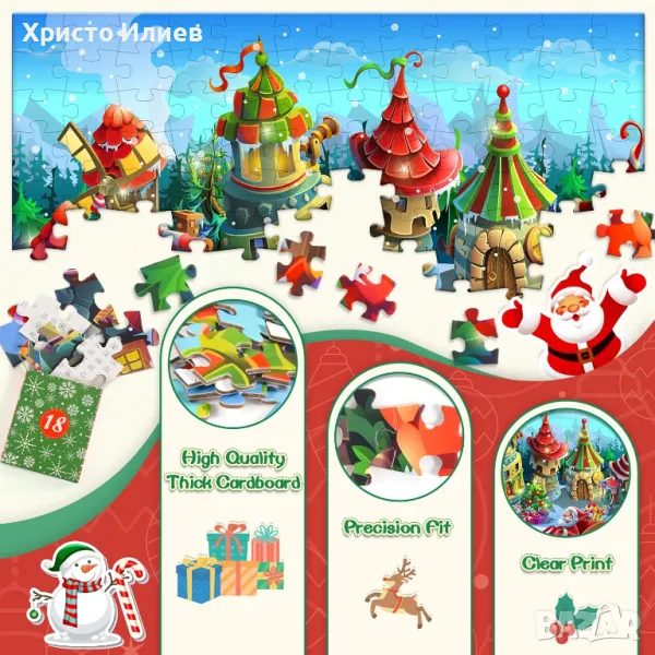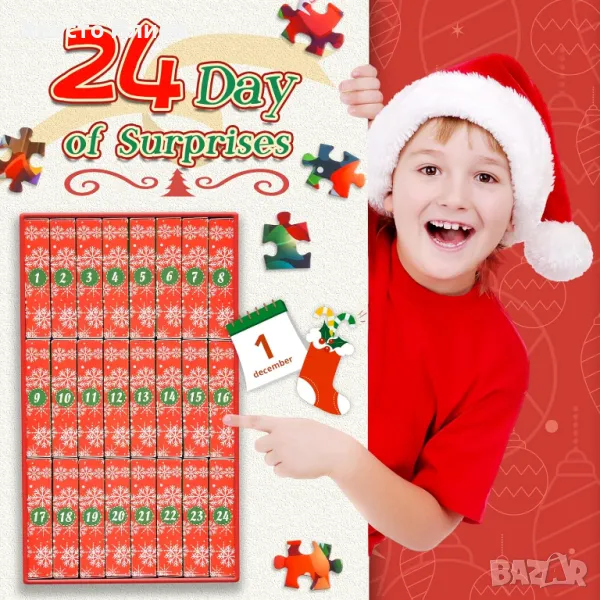 - Забавна пъзел игра: този коледен пъзел е идеален за деца на 3 и повече години. Адвент календарът е предназначен да изненадва децата всеки ден преди Коледа. Играта пъзел не само подобрява паметта и пространственото въображение на децата, но и координацията между ръцете и очите им.