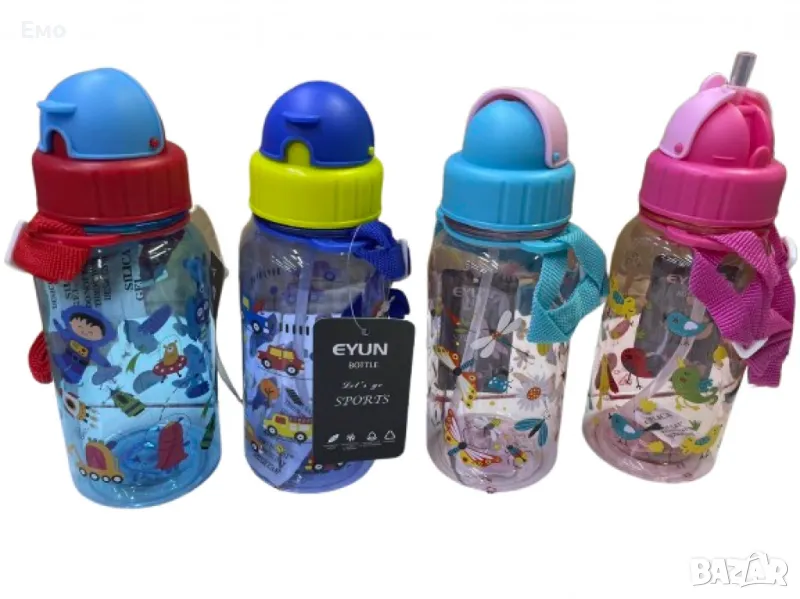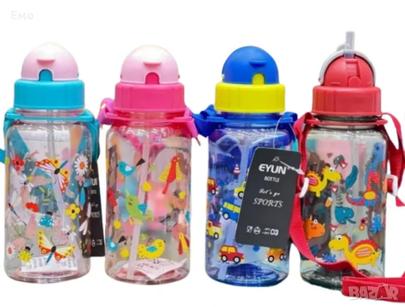Цветна детска бутилка за вода с вградена сламка