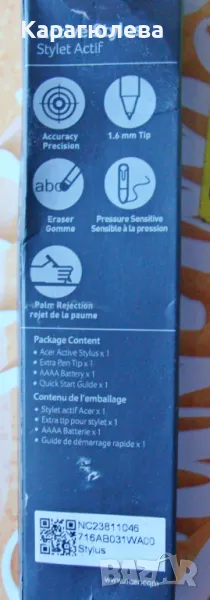 Писалка/стилус за лаптоп и таблет Acer Active Stylus, модел NC23811046, снимка 1 - Лаптоп аксесоари - 48701809 Писалка/стилус за лаптоп и таблет Acer Active Stylus, модел NC23811046, снимка 2 - Лаптоп аксесоари - 48701809 Писалка/стилус за лаптоп и таблет Acer Active Stylus, модел NC23811046, снимка 3 - Лаптоп аксесоари - 48701809 1/3